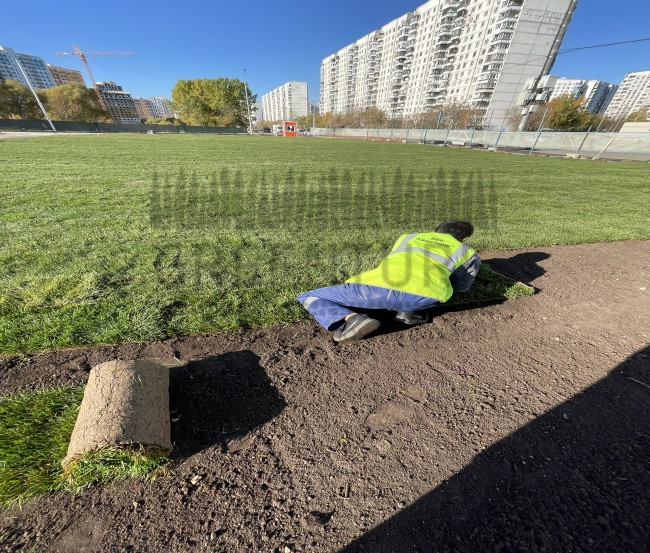 Такое покрытие подходит для облагораживания спортивных площадок, приусадебных участков, парков и скверов. Оно неприхотливое и приятное на ощупь.
